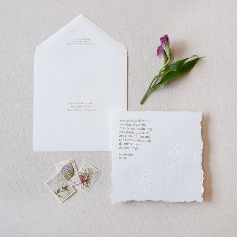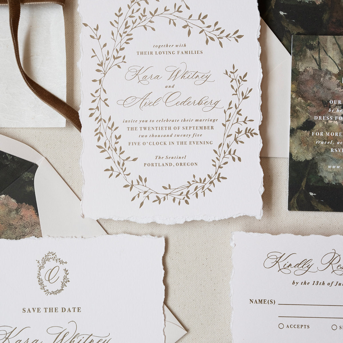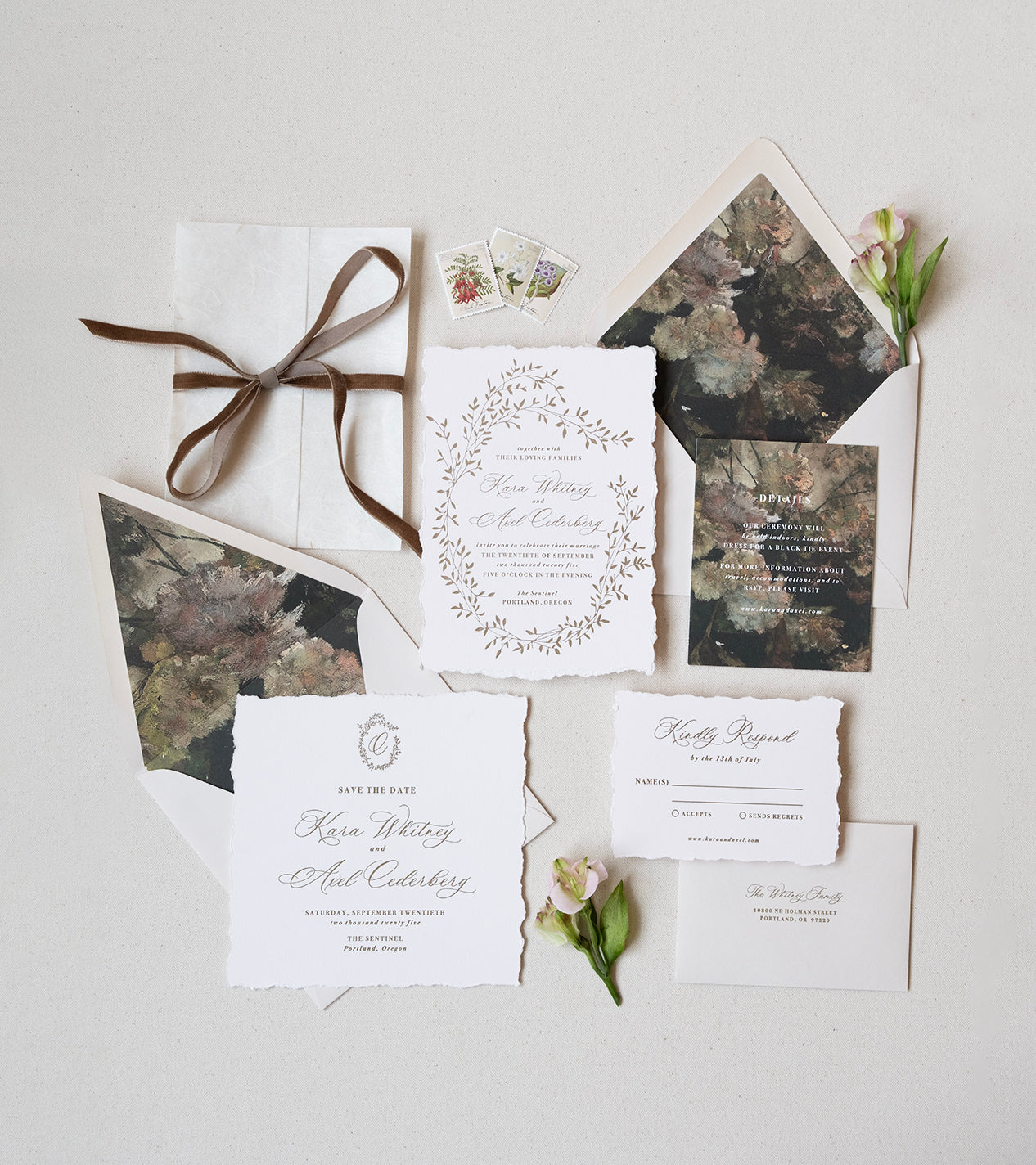 This warm, textural wedding stationery collection offers a sophisticated and romantic experience.