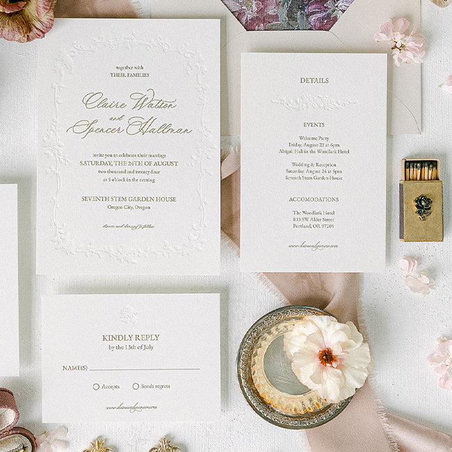 Explore our refined stationery suites, each designed with artistry and intention. From romantic florals to vintage charm, discover pieces that beautifully capture the spirit of your celebration.